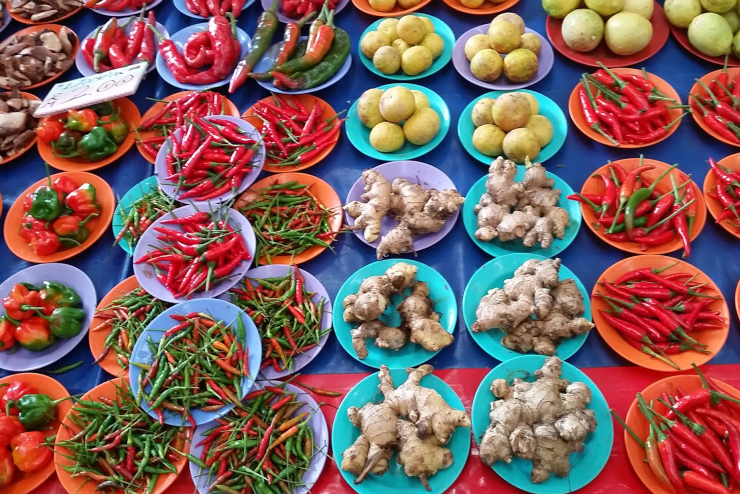 The market stalls offer a huge variety of local produce from snacks, local delicacies, fruits, vegetables, fresh meat, fresh fish, eggs, plants, pets, jungle produce to clothing, local craft items and souvenirs.