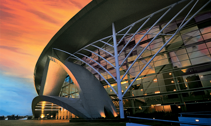 The Borneo Convention Centre Kuching (BCCK) is a convention centre located in Kuching, Sarawak, Malaysia. BCCK is strategically located equidistant from the two main hubs of Kuching City, Kuching North & Kuching South. As the first purpose-built Convention Centre in Sarawak, its award-winning architecture was crafted with Sarawak's lush rainforest in mind.